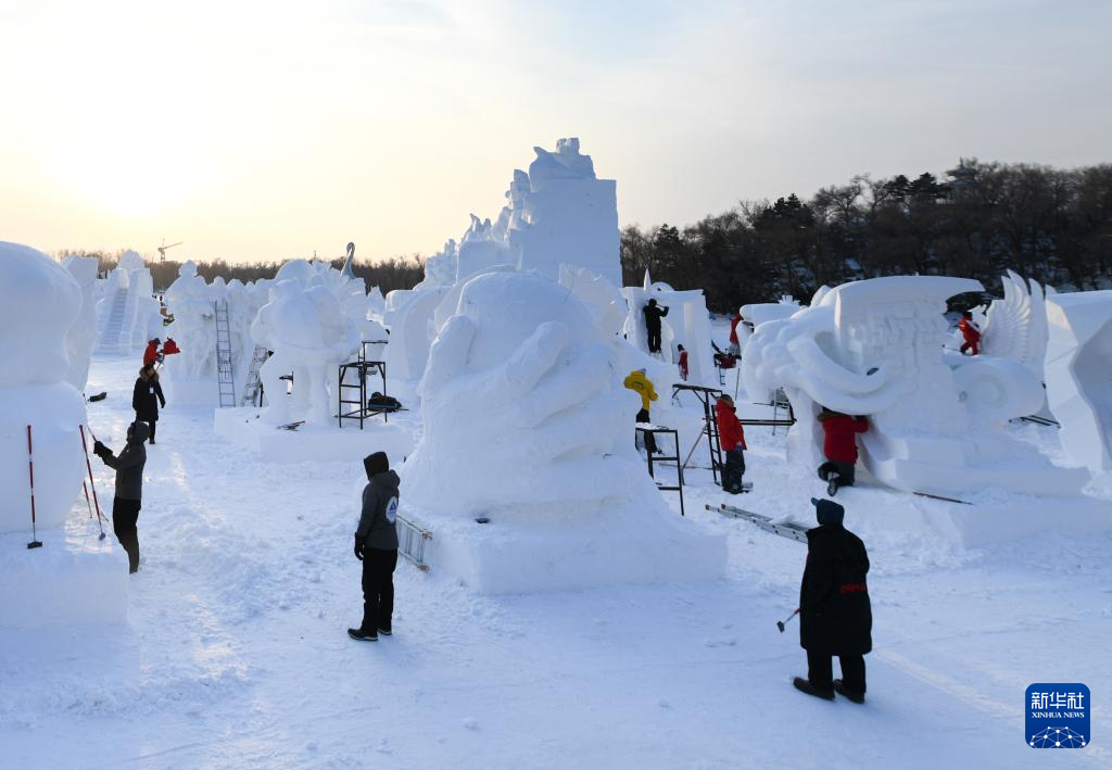 1月8日,选手在太阳岛雪博会园区内制作雪雕。 当日,在哈尔滨太阳岛雪博会园区内举行的第26届中国·哈尔滨国际雪雕比赛进入第三天的赛程。 新华社记者 王松 摄