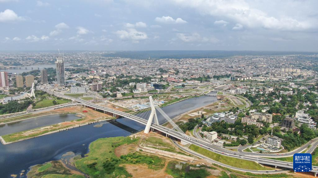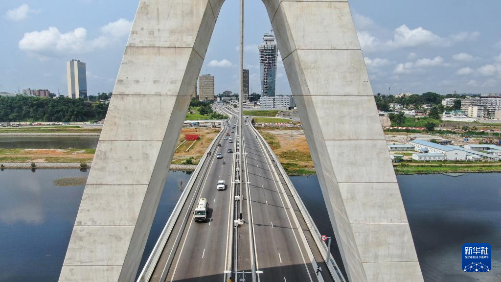 1月9日,车辆行驶在科特迪瓦经济首都阿比让的科科迪桥上(无人机照片)。 由中国路桥工程有限责任公司承建的科特迪瓦经济首都阿比让科科迪桥项目主线总长约1.63公里,其中主桥为钢槽梁单塔斜拉形式,全长630米、主跨长200米、主塔高108.6米。作为一项改善民生的工程,科科迪桥有效缓解了阿比让市区交通拥堵问题。目前科科迪桥已成为阿比让的新地标之一。 新华社记者 韩旭 摄