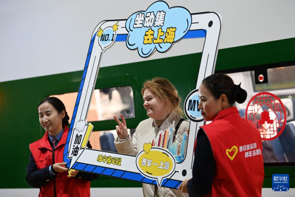 1月10日,旅客(中)在西安站参加CR200J1-C型复兴号动力集中型动车组列车首发活动。 当日零时起,全国铁路实行新的列车运行图。调图后,全国铁路每日安排旅客列车11149列,较现图增加233列;每日开行货物列车22264列,较现图增加40列,列车开行结构不断优化,客货运输能力进一步提升。 新华社记者 李一博 摄 |