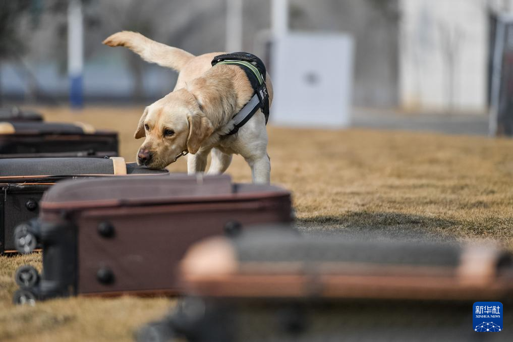 1月10日,警犬“八鲁”在搜毒训练中。 当日,湖北省黄石市公安局刑侦支队警犬训练大队对警犬开展强化训练,为即将到来的2024春运安全保障工作做好准备。 新华社记者 伍志尊 摄pagebreak