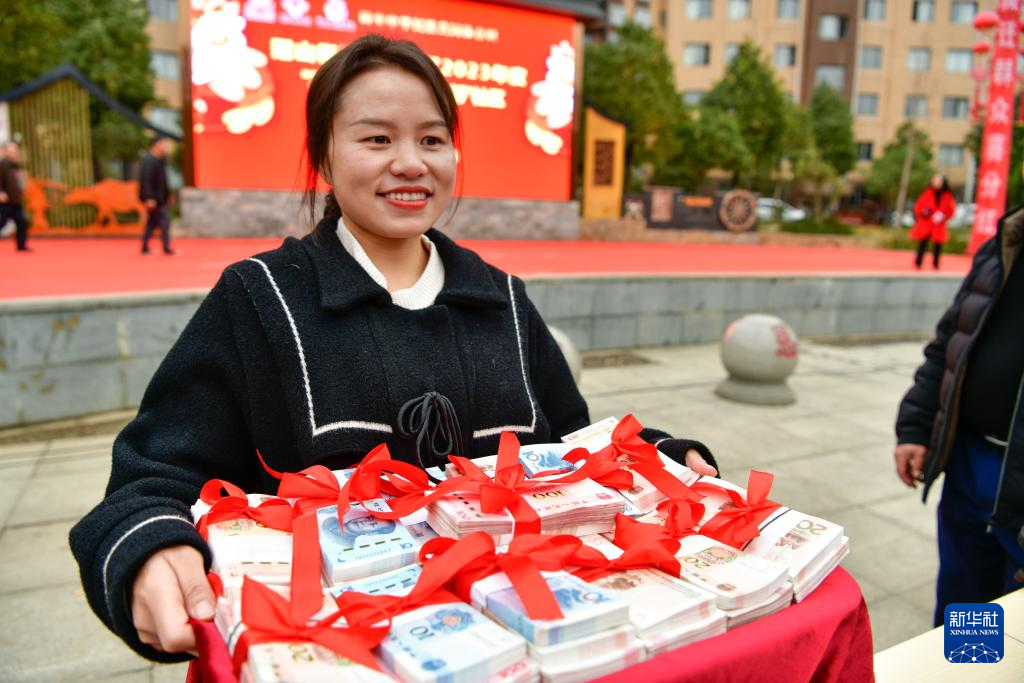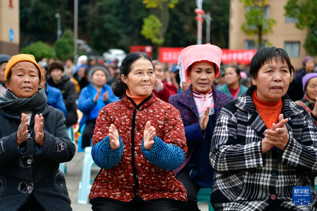 1月11日,易地扶贫搬迁群众参加贵州省龙里县冠山街道奋进社区2023年集体经济收益分红大会。 新华社记者 杨文斌 摄pagebreak