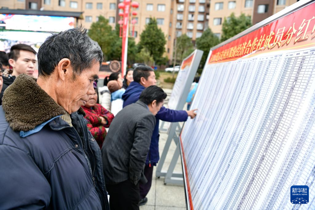 1月11日,贵州省龙里县冠山街道奋进社区易地扶贫搬迁群众在查看分红详细表。 新华社记者 杨文斌 摄 |