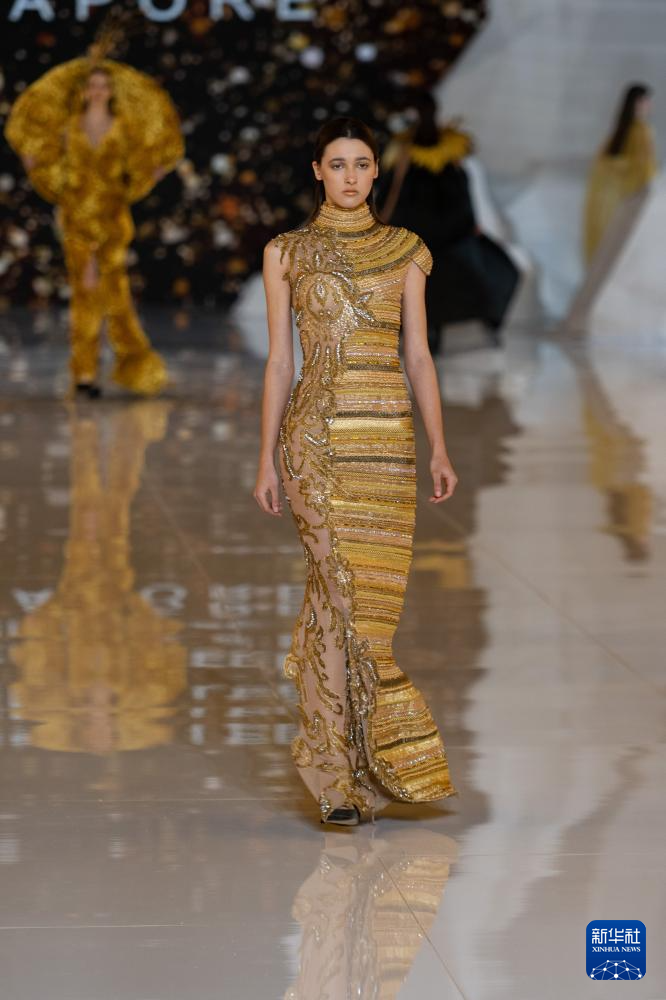 1月11日,模特在2024第十届哈尔滨国际时装周开幕式上展示服装。 当日,2024第十届哈尔滨国际时装周启幕。 新华社记者 谢剑飞 摄pagebreak