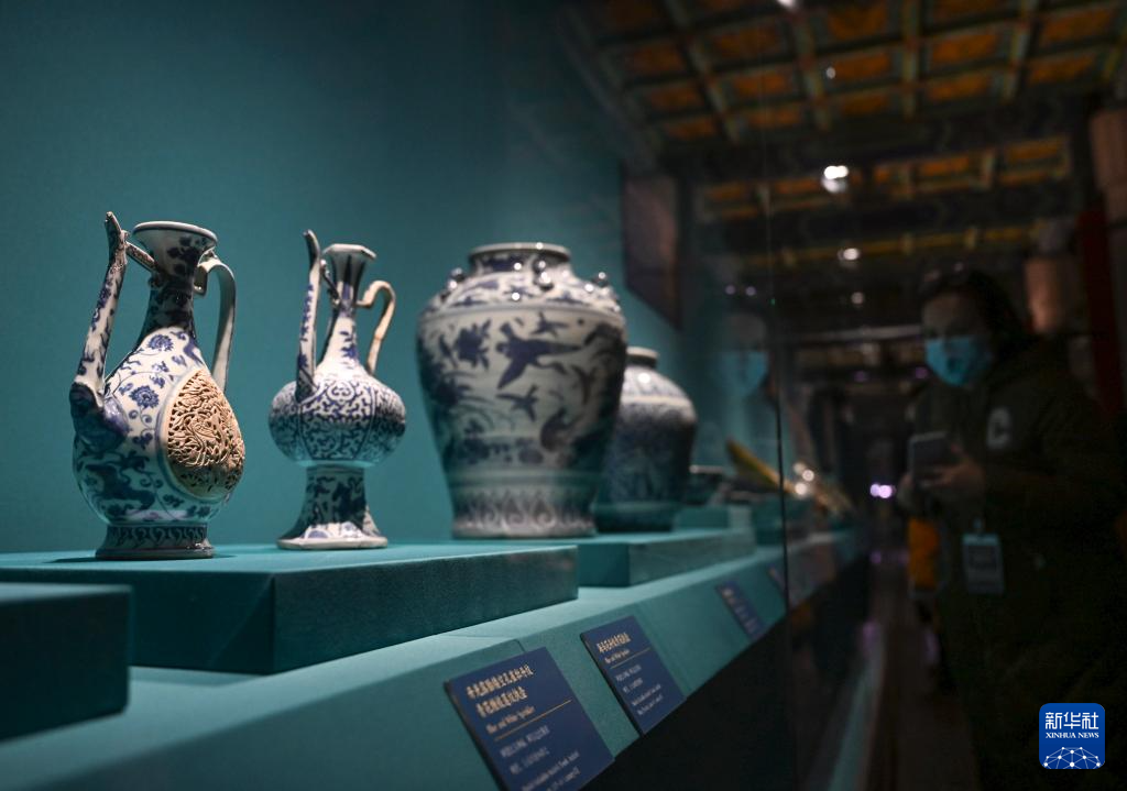 这是展出的伊朗阿德比尔神庙收藏的青花瓷(1月10日摄)。 新华社记者 金良快 摄pagebreak