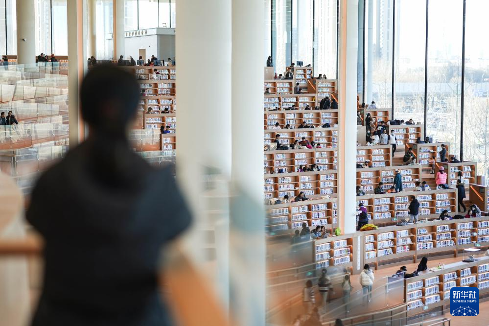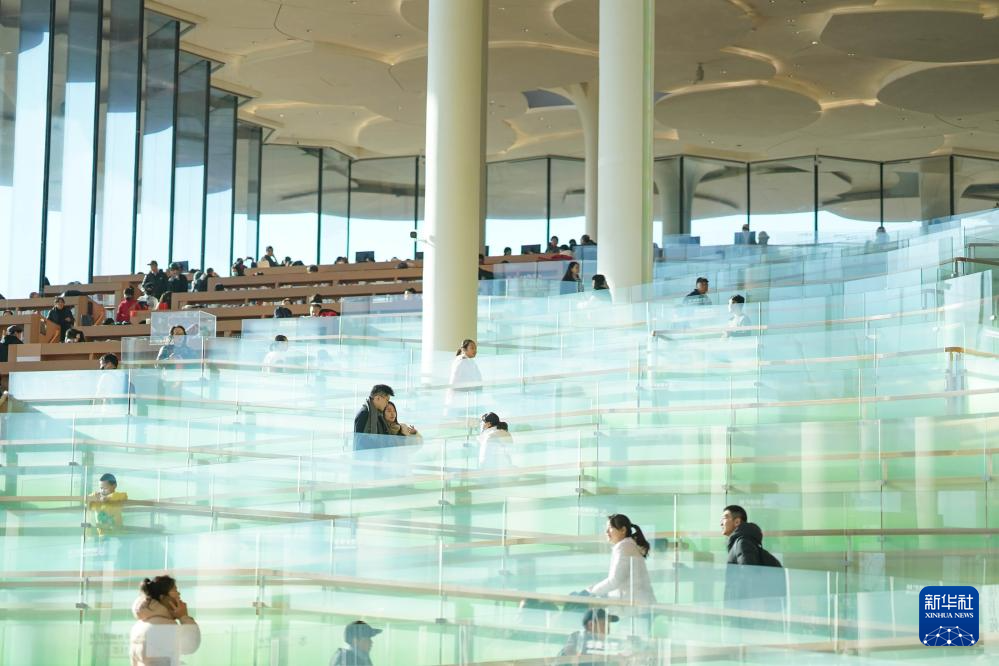 这是1月14日拍摄的北京城市图书馆内景。 周末,不少市民来到新开馆不久的北京城市图书馆,在书香中度过假日。 新华社记者 彭子洋 摄pagebreak