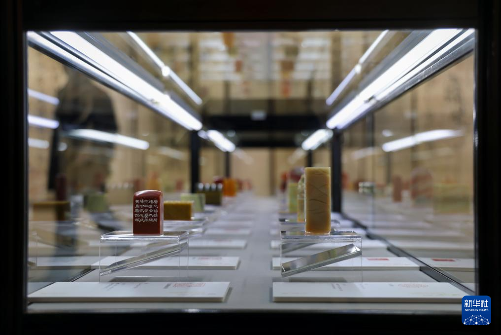 1月14日在荣宝斋首届青年艺术提名展上拍摄的篆刻作品。 当日,荣宝斋首届青年艺术提名展在北京荣宝斋大厦开幕。展览包括中国画展、书法篆刻展、当代艺术展等板块,荟萃了全国各大专业院校的青年专家学者以及艺术界的青年中坚力量。展览旨在发现新人、团结新人、推动新人,坚持学术与市场相结合,促进艺术创作繁荣和艺术市场繁荣,引领艺术市场新发展。 新华社记者 邢广利 摄pagebreak