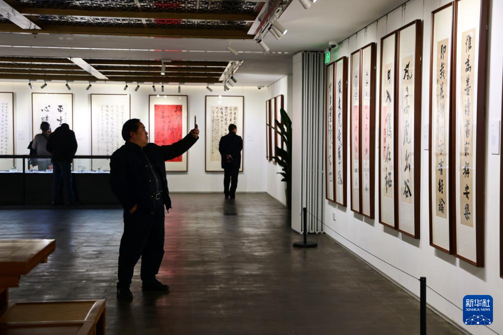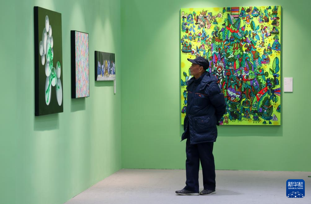 1月14日,观众在观看展览。 当日,荣宝斋首届青年艺术提名展在北京荣宝斋大厦开幕。展览包括中国画展、书法篆刻展、当代艺术展等板块,荟萃了全国各大专业院校的青年专家学者以及艺术界的青年中坚力量。展览旨在发现新人、团结新人、推动新人,坚持学术与市场相结合,促进艺术创作繁荣和艺术市场繁荣,引领艺术市场新发展。 新华社记者 邢广利 摄pagebreak