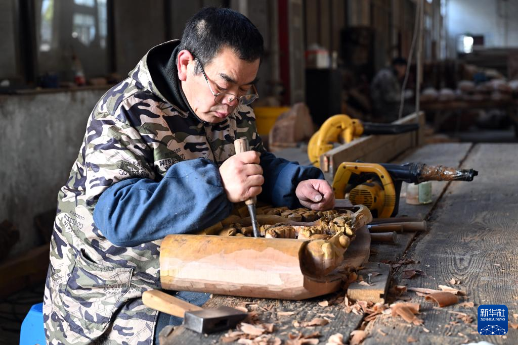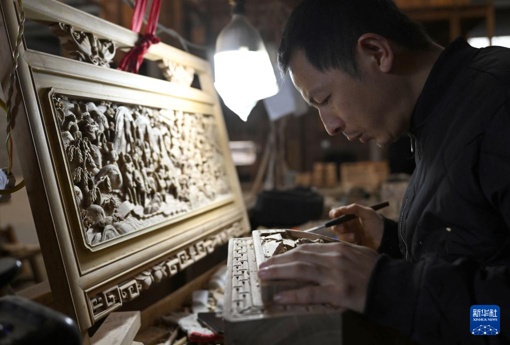 1月11日,在黄山徽匠园林古建有限公司,工作人员在制作徽派仿古建筑配件。 近年来,安徽省黄山市积极推动徽派古建创新发展,一批古建企业逐步发展壮大,古建人才队伍不断聚集,成为拉动消费增长的新动力。目前,黄山市仿古建筑营造、古建修缮保护利用、古建构件配件生产等各类企业达到254家,徽州古建工匠1.4万余人。 新华社记者 周牧 摄pagebreak