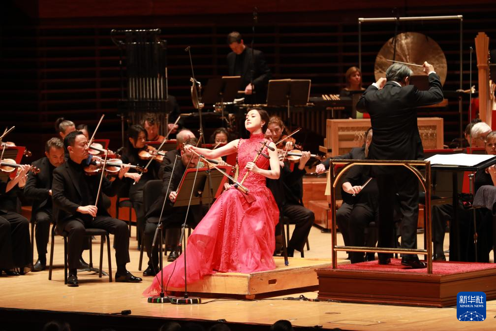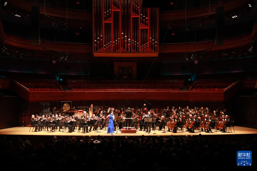 1月12日,在美国费城,中国演奏家陆轶文(中)在2024年费城交响乐团新春音乐会上演出。 12日晚,费城交响乐团新春音乐会在美国费城金梅尔表演艺术中心举行。中国爱乐乐团和上海交响乐团总监、知名指挥家余隆携手多位中国艺术家,与费城交响乐团通力合作,带领2000余名观众在传统与现代之间穿梭,在东方与西方经典之间徜徉,跟随动人的音符共同迎接中国农历新年的到来。 新华社记者 谢锷 摄