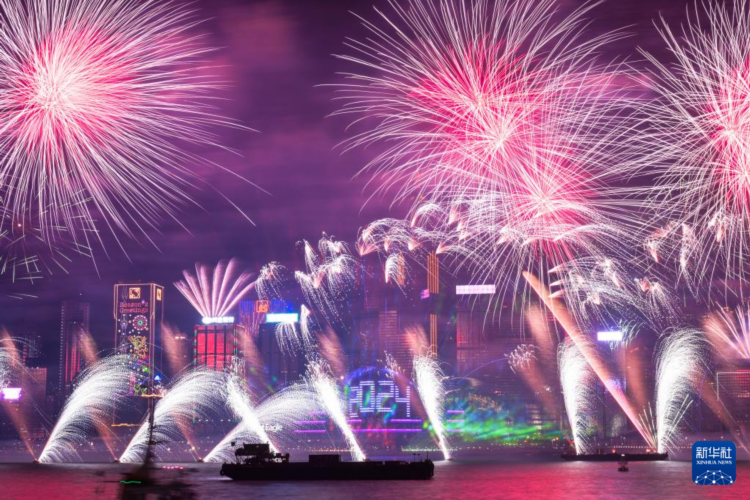 2024年1月1日,绚烂的烟花绽放在维港上空。 新一届区议员履新即积极作为、特区政府“抢人才”“抢企业”奋发有为、粤港澳大湾区加速融合发展……新年伊始,香港万象更新,生机勃勃,特区政府和社会各界正按国家“十四五”规划和行政长官施政报告为香港擘画的蓝图加速前进。 展望2024年,随着香港基本法第二十三条立法年内完成,香港新经济动力不断显现、社会活力持续增强,香港将进一步搞活经济、改善民生,展现稳定繁荣、由治及兴的喜人景象。 新华社记者 朱炜 摄