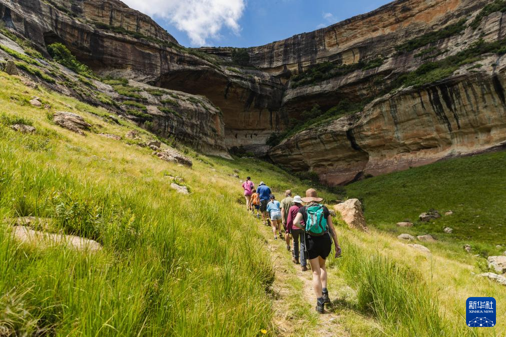 1月14日,游客在南非金门高地国家公园内徒步。 金门高地国家公园位于南非自由邦省,距约翰内斯堡320公里,以在日光照耀下呈现金色的砂岩峭壁而闻名。 新华社记者 张誉东 摄 |