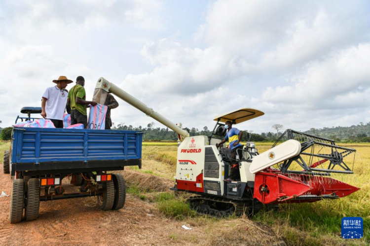 1月8日,稻农在科特迪瓦南部迪沃省格格杜垦区收割水稻。 1997年,科特迪瓦格格杜垦区迎来了第一批中国农业技术合作组。作为中科两国建交后的首个成套农业项目,经过近30年、11期援非农业专家的不懈努力,如今的格格杜垦区不仅是中科两国农业合作示范基地,更是科特迪瓦全国闻名的水稻种植基地。 新华社记者 韩旭 摄