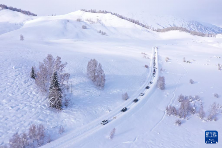 这是1月16日拍摄的禾木村排队向外通行的车辆(无人机照片)。 经过连日清雪作业,新疆阿勒泰地区布尔津县禾木村通往县城道路的雪阻路段于1月16日13时许被疏通。至此,此前受雪崩阻断道路影响的新疆喀纳斯景区各区域人员均可通行山外。 禾木村位于新疆喀纳斯景区内,该景区共包含哈纳斯、贾登峪、白哈巴、禾木四个区域。受1月6日以来的多轮降雪影响,喀纳斯景区内近期多次发生雪崩,阻断了景区通往山外县城和各区域间相连道路的通行,使当地居民和游客无法正常出行。 新华社记者 李响 摄