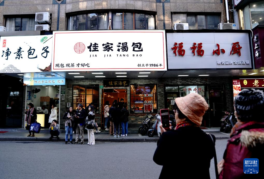 1月17日,游人在上海黄河路“打卡”拍摄。 电视剧《繁花》的播出,带火了上海黄河路的各种美食,许多人专程赶来“打卡”品尝。 新华社记者 张建松 摄pagebreak