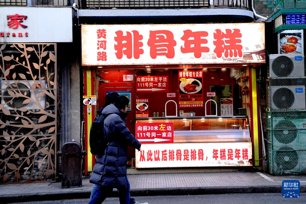 1月17日在上海黄河路拍摄的排骨年糕店。 电视剧《繁花》的播出,带火了上海黄河路的各种美食,许多人专程赶来“打卡”品尝。 新华社记者 张建松 摄pagebreak