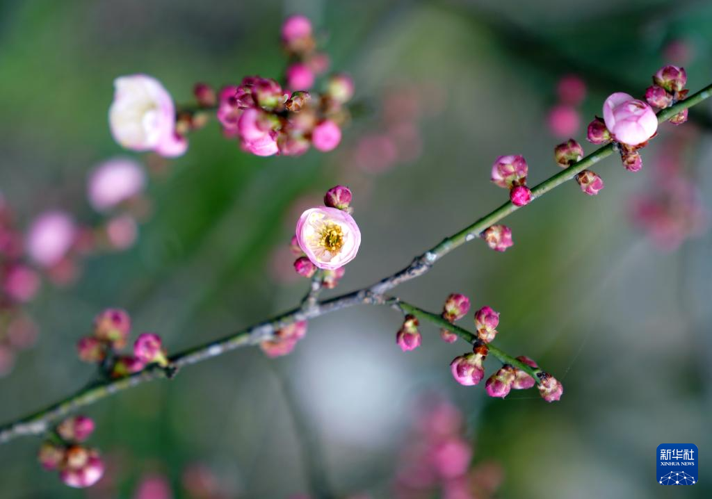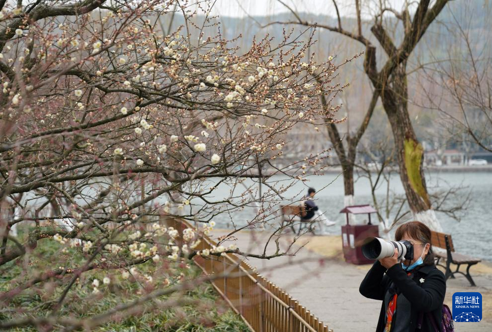 1月18日,游客在杭州西湖孤山梅园拍照。 近日,杭州西湖孤山一带红梅、白梅悄然绽放,暗香浮动,吸引民众前来赏花。 新华社记者 韩传号 摄pagebreak