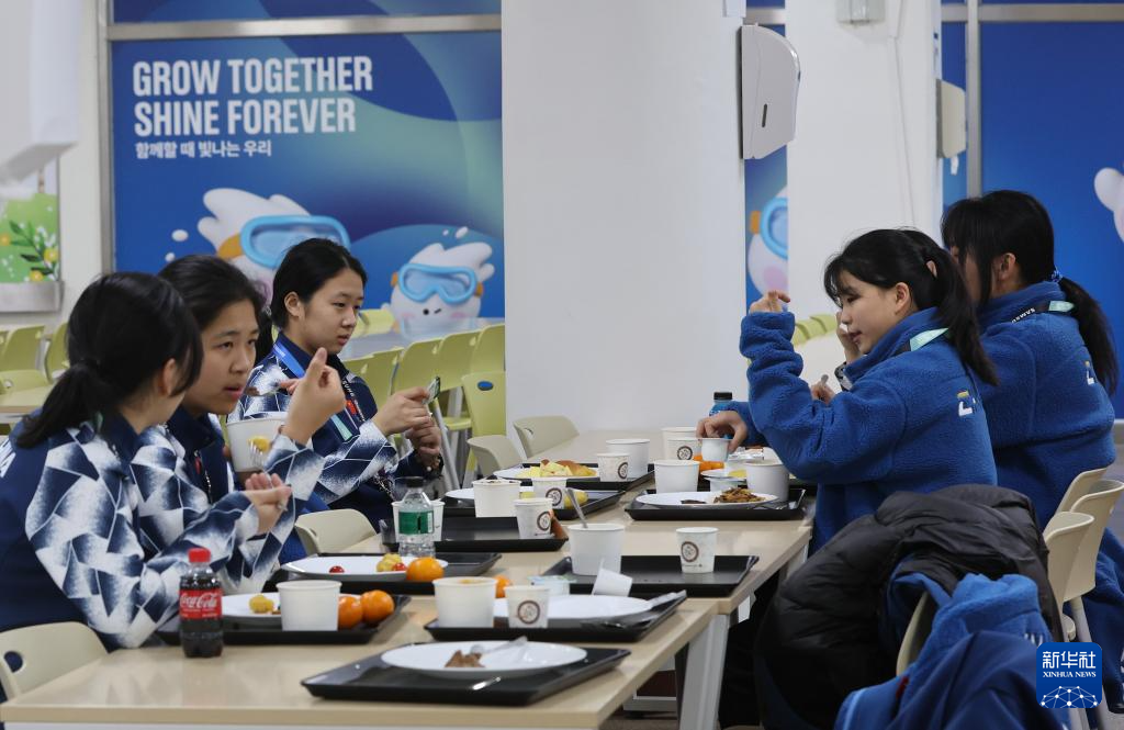 1月18日,中国运动员在冬青奥村内就餐。 新华社记者 姚琪琳 摄