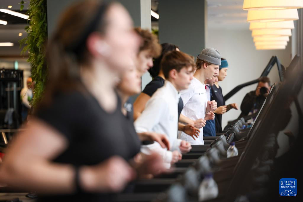 1月18日,运动员在冬青奥村多功能健身中心跑步。 新华社记者 胡虎虎 摄