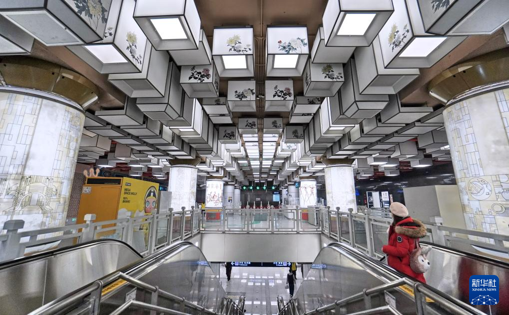 这是平安里地铁站内的中国风灯饰(1月20日摄)。 近年来,北京市在大力建设地下轨道交通的同时,注重站点的艺术设计,给乘客带来艺术享受。 新华社记者 李欣 摄pagebreak