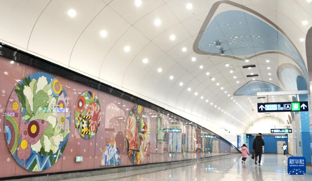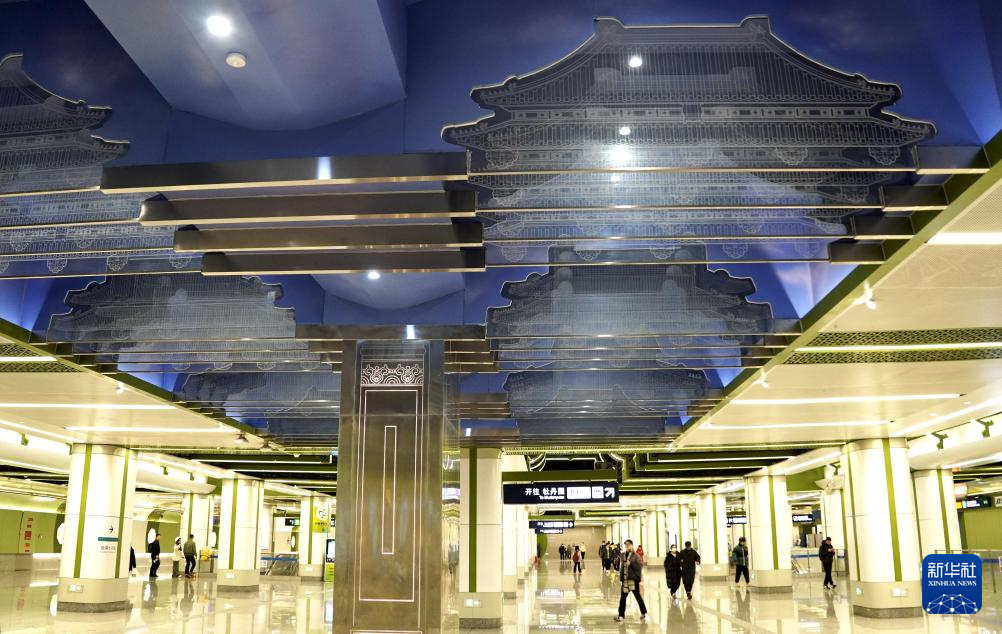 这是新宫地铁站内展示古都历史的屋顶装饰(1月20日摄)。 近年来,北京市在大力建设地下轨道交通的同时,注重站点的艺术设计,给乘客带来艺术享受。 新华社记者 李欣 摄pagebreak