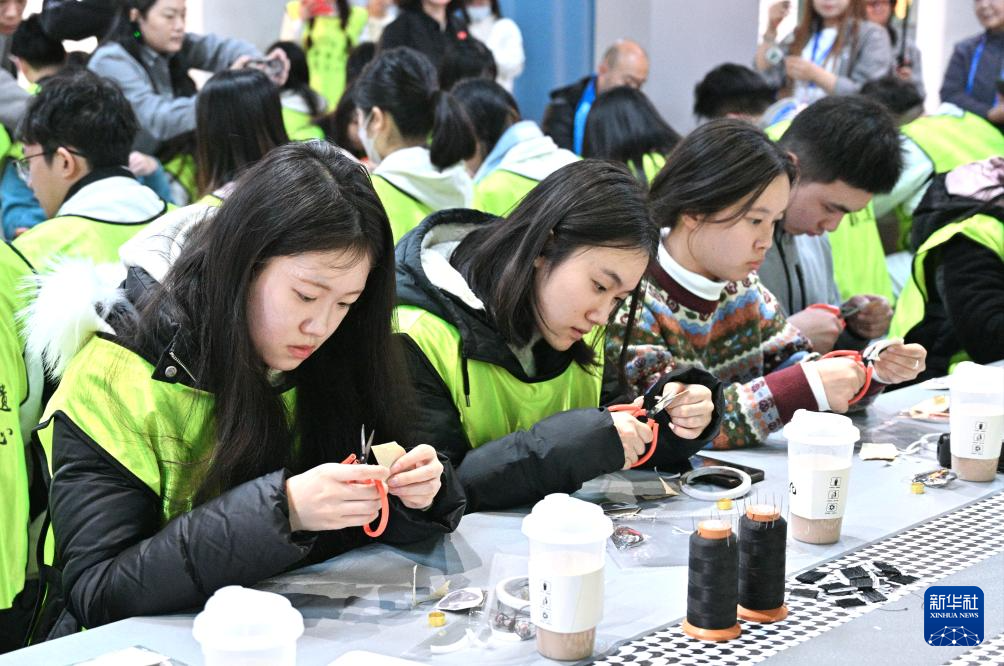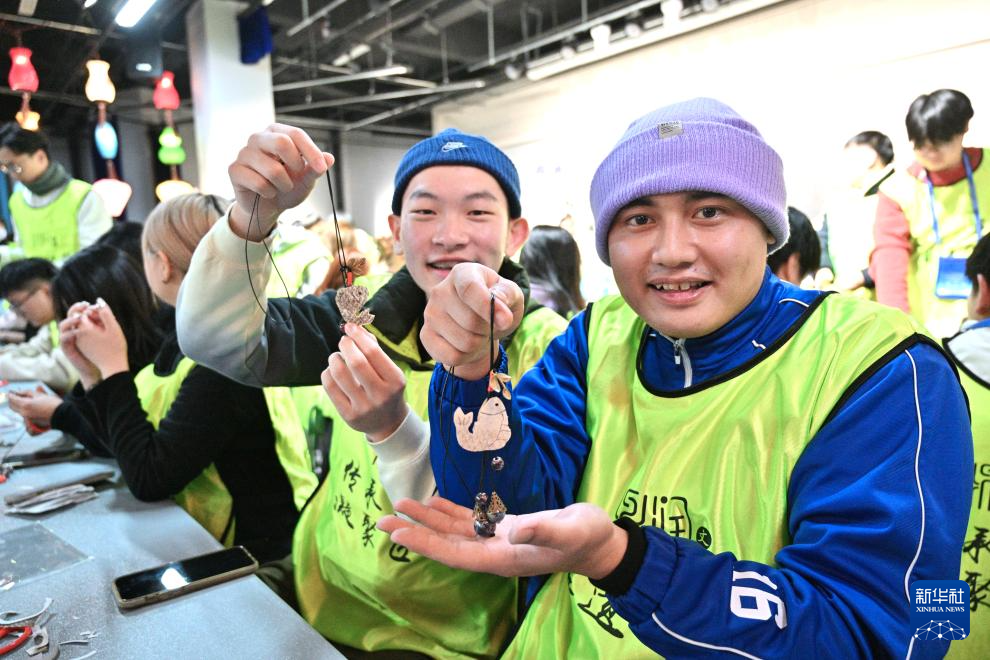 1月24日,冬令营营员在吉林省松原市鼎润文化创意产业园体验制作鱼皮项链。 当日,全国台联第三十届台胞青年冬令营吉林分营的营员们来到吉林省松原市,体验东北的渔猎文化。以“携手正青春 同心向未来”为主题的全国台联第三十届台胞青年冬令营开营式23日在吉林长春举办。 新华社记者陈晔华摄pagebreak