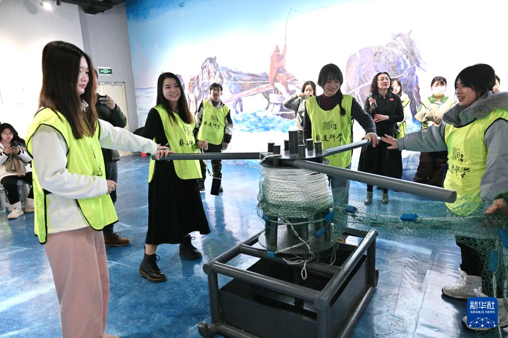 1月24日,冬令营营员在吉林省松原市鼎润文化创意产业园体验查干湖冬捕用的绞盘。 当日,全国台联第三十届台胞青年冬令营吉林分营的营员们来到吉林省松原市,体验东北的渔猎文化。以“携手正青春 同心向未来”为主题的全国台联第三十届台胞青年冬令营开营式23日在吉林长春举办。 新华社记者陈晔华摄pagebreak