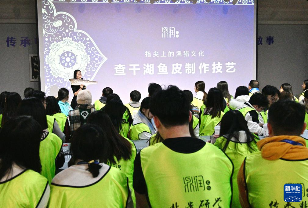 1月24日,冬令营营员在吉林省松原市鼎润文化创意产业园学习鱼皮制作技艺。 当日,全国台联第三十届台胞青年冬令营吉林分营的营员们来到吉林省松原市,体验东北的渔猎文化。以“携手正青春 同心向未来”为主题的全国台联第三十届台胞青年冬令营开营式23日在吉林长春举办。 新华社记者陈晔华摄pagebreak