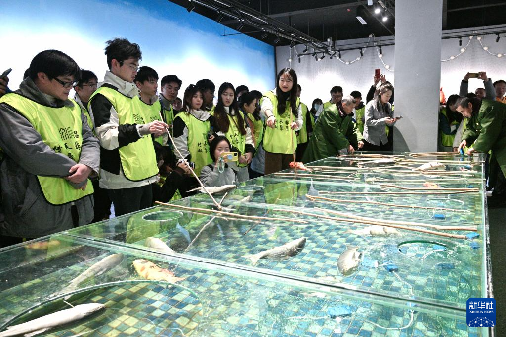 1月24日,冬令营营员在吉林省松原市鼎润文化创意产业园体验模拟查干湖冬捕。 当日,全国台联第三十届台胞青年冬令营吉林分营的营员们来到吉林省松原市,体验东北的渔猎文化。以“携手正青春 同心向未来”为主题的全国台联第三十届台胞青年冬令营开营式23日在吉林长春举办。 新华社记者陈晔华摄pagebreak