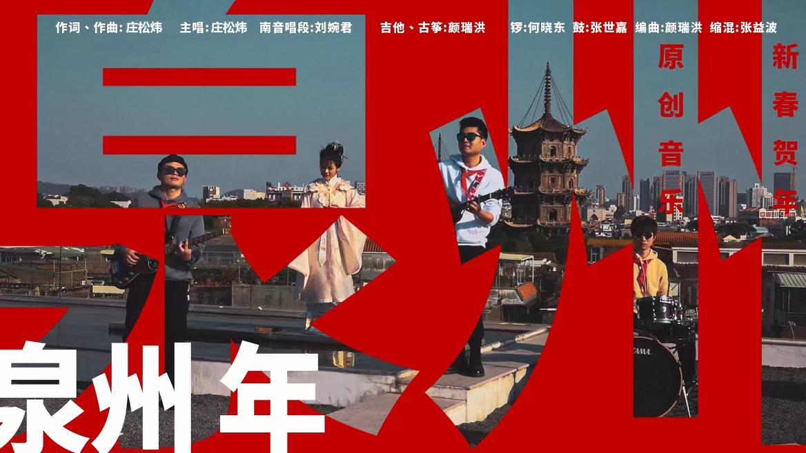 | b551349b6112396aa9021f3121ec5dc8 作曲:庄松炜(海鱼) 作词:庄松炜(海鱼) 演唱:庄松炜(海鱼) 创作介绍:《泉州年》这首歌为泉州市贺岁歌。歌曲充分展现世遗泉州的独特魅力,歌词以轻松、自然的方式引出钟楼、中山路、关帝庙、大坪山郑成功像、陈三五娘、南音、老子君岩、东西塔等泉州非物质文化遗产与物质文化遗产,勾起人们浓浓的乡愁。作品与本土戏曲元素进行创新结合,旋律优美动感,充满正能量,表达人民的喜悦心情及对美好生活的向往。 庄松炜毕业于汕头大学长江艺术与设计学院国画专业,硕士研究生。画家,民谣唱作人。