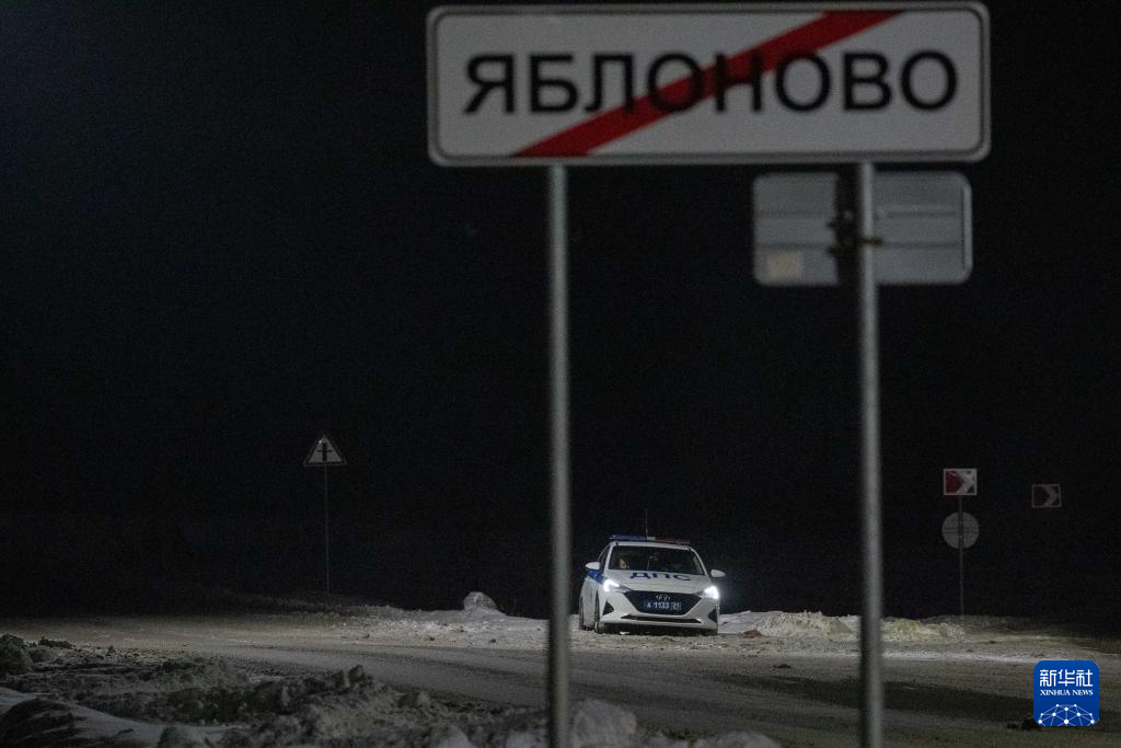 1月25日凌晨,在俄罗斯别尔哥罗德州,警察在坠机地点附近封锁道路。