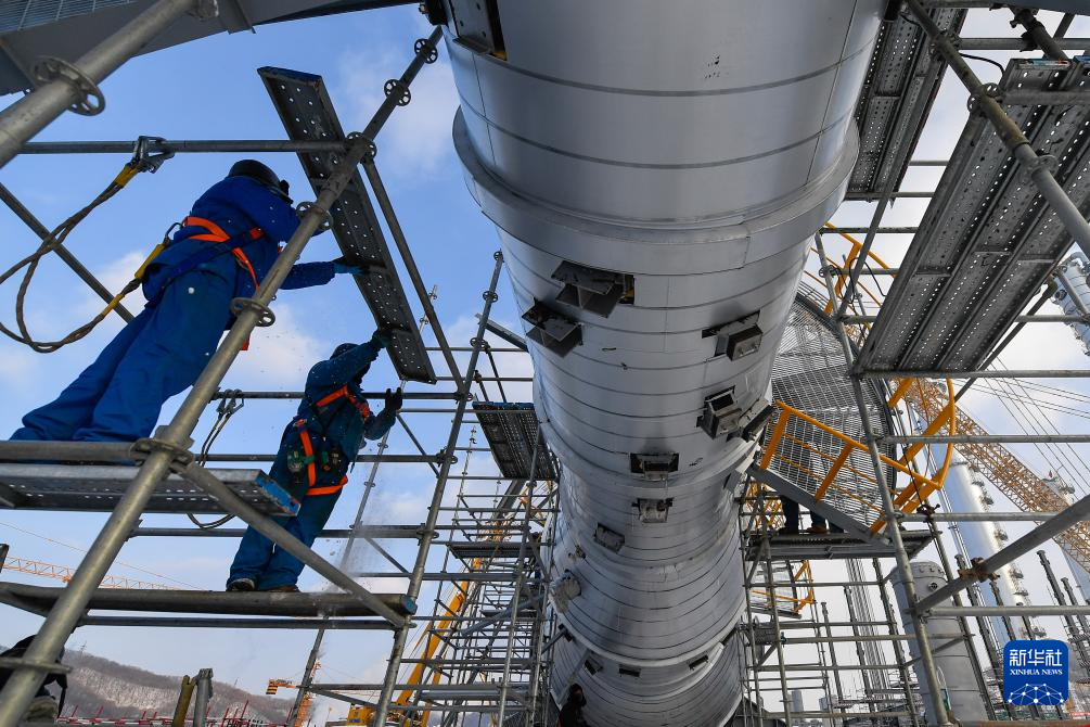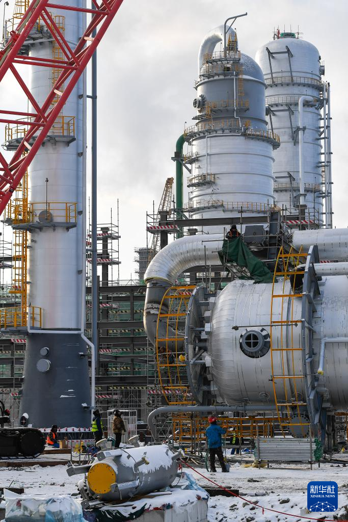 工人在中国石油吉林石化公司炼油化工转型升级项目120万吨/年乙烯装置建设现场进行施工作业(1月24日摄)。 隆冬时节,中国石油吉林石化公司炼油化工转型升级项目120万吨/年乙烯装置建设现场施工正忙。 吉林石化转型升级项目总投资339亿元,120万吨/年乙烯装置是转型升级新建及改(扩)建28套装置中的关键核心装置,年可生产聚合级乙烯120万吨,聚合级丙烯58.7万吨。装置投产后,吉林石化乙烯总产能将达190万吨/年,乙烯产能和化工规模达到国内先进水平。 新华社记者 许畅 摄pagebreak