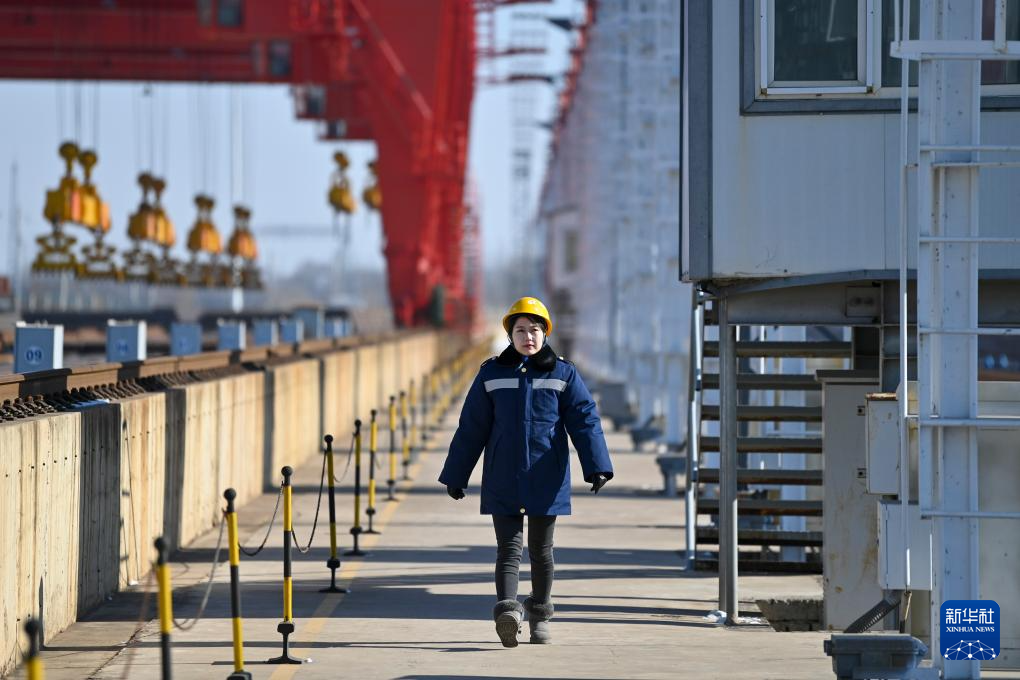 在位于山西大同的湖东钢轨焊接整修基地,代娇娇结束作业后离开作业点(1月24日摄)。 中国铁路太原局集团有限公司太原工务机械段湖东钢轨焊接整修基地位于山西大同,“90后”女孩代娇娇是基地内女子吊装工区的一名龙门吊司机。每次作业,她都需要徒手攀爬十米多高,在仅有两平方米左右的操作室内工作,将一根根钢轨原材料精准吊运到生产线上。 春运即将来临,代娇娇和同事们的工作也变得更加忙碌。代娇娇说:“看着眼前一列列火车经过,想到自己每一次精准吊运都是为了保障列车的安全运行,心里充满了自豪感。” 新华社记者 杨晨光 摄pagebreak