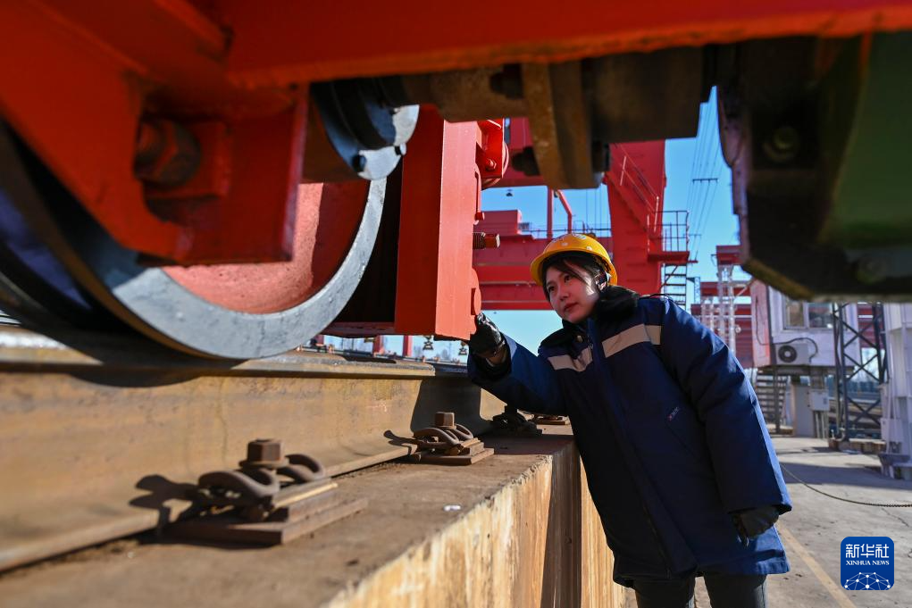 在位于山西大同的湖东钢轨焊接整修基地,代娇娇在开始作业前排查安全隐患(1月24日摄)。 中国铁路太原局集团有限公司太原工务机械段湖东钢轨焊接整修基地位于山西大同,“90后”女孩代娇娇是基地内女子吊装工区的一名龙门吊司机。每次作业,她都需要徒手攀爬十米多高,在仅有两平方米左右的操作室内工作,将一根根钢轨原材料精准吊运到生产线上。 春运即将来临,代娇娇和同事们的工作也变得更加忙碌。代娇娇说:“看着眼前一列列火车经过,想到自己每一次精准吊运都是为了保障列车的安全运行,心里充满了自豪感。” 新华社记者 杨晨光 摄pagebreak