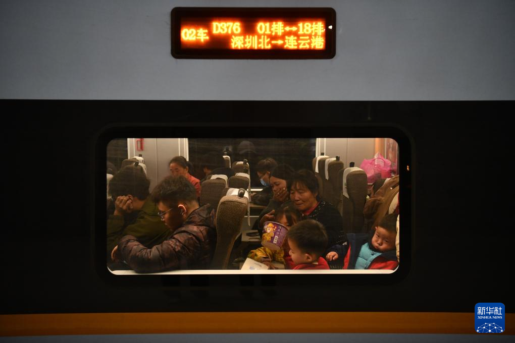 1月26日,旅客在深圳北站乘坐从深圳北开往连云港的列车。 当日,2024年春运启动。2024年春运从1月26日开始,至3月5日结束,为期40天。 新华社记者 梁旭 摄