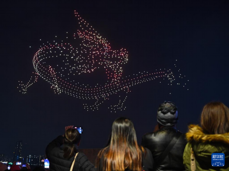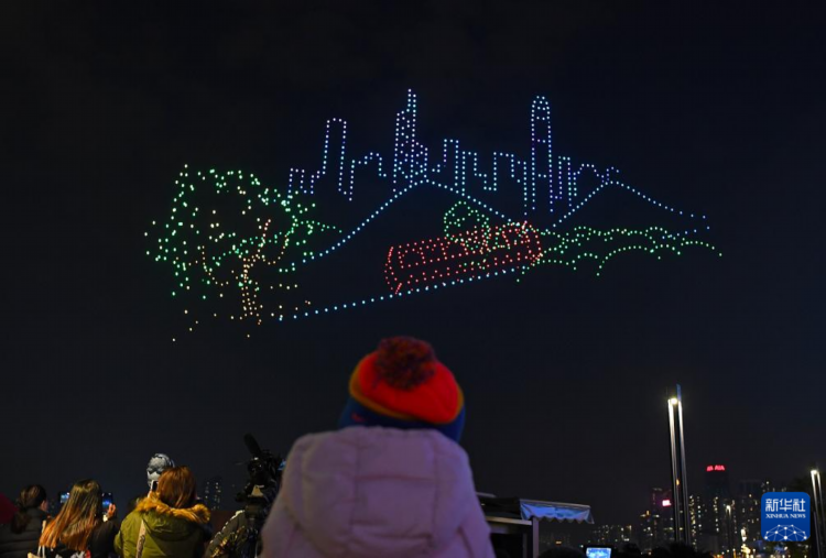 1月28日,无人机在维港夜空组成龙形图案。 当日,“缤纷香港”大型无人机灯光秀在香港湾仔海滨举办。无人机队在维多利亚港夜空呈现多幅香港标志性图案,并组成“空中二维码”,游人扫码即可了解香港相关旅游信息。 新华社记者 陈铎 摄