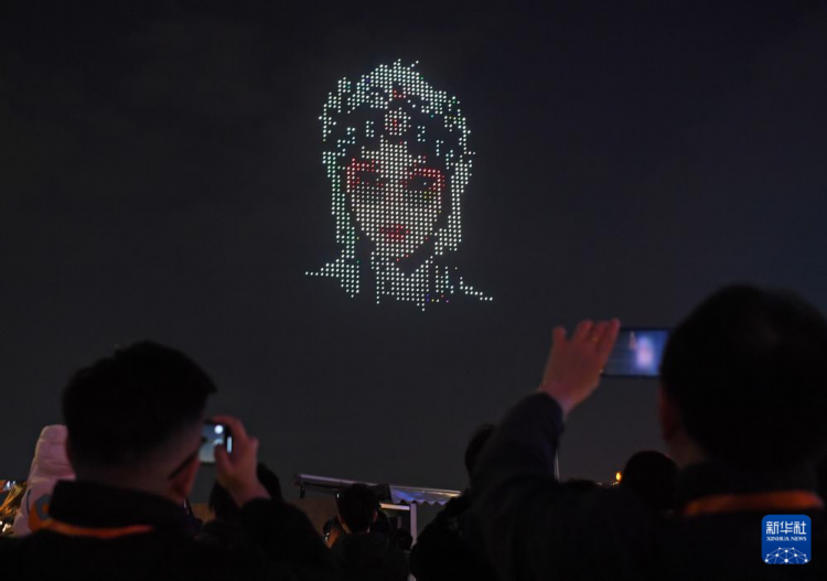1月28日,无人机在维港夜空组成粤剧花旦图案。 当日,“缤纷香港”大型无人机灯光秀在香港湾仔海滨举办。无人机队在维多利亚港夜空呈现多幅香港标志性图案,并组成“空中二维码”,游人扫码即可了解香港相关旅游信息。 新华社记者 陈铎 摄