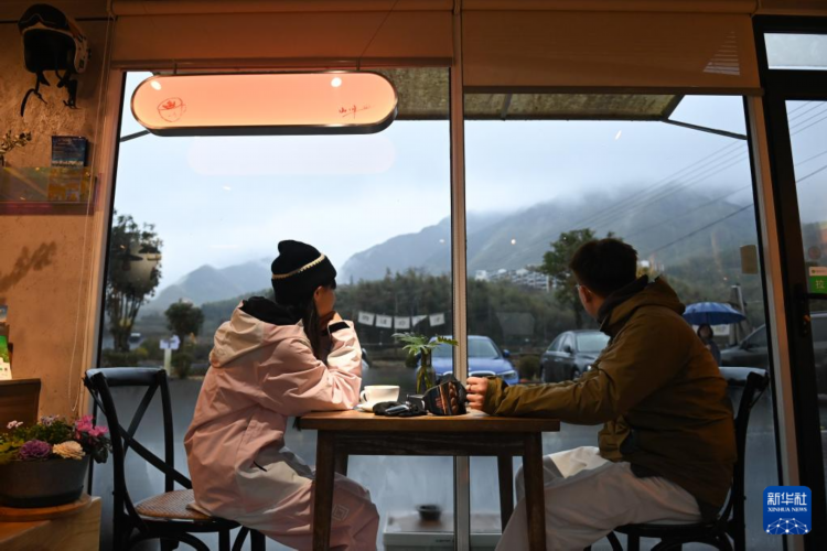 2月1日,游客在山川乡“山川日记”民宿的咖啡馆休闲。据了解,2019年金绪成将老宅改造为民宿,并经营一家咖啡馆。2024年春节期间的6间客房已被预定一空。 寒假期间,浙江省湖州市安吉县山川乡迎来不少游客。从2013年起,当地持续打造“春赏花、夏避暑、秋登山、冬滑雪”的四季文旅品牌,依托假日期间云上草原景区日均约8500人的游客量,探索以体育运动为核心的全域文体旅产业发展路径,支持和发展村民创业就业,助力乡村振兴。 新华社记者 黄宗治 摄