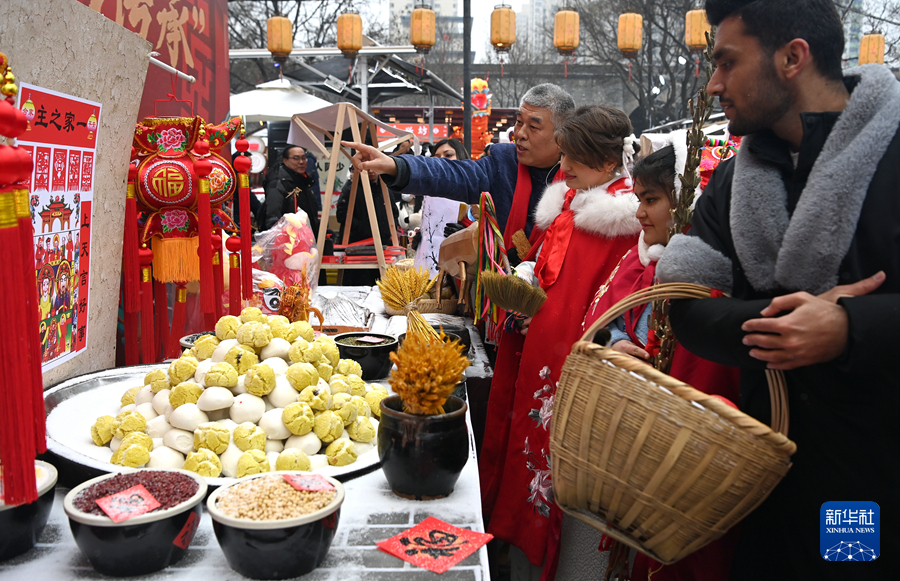 2月2日,在西安永兴坊举行的小年活动上,来自西安各大学的留学生在民俗专家的讲解下了解小年祭灶所用的物品。 随着北方、南方小年相继到来,各地春节氛围日益浓厚。 新华社记者 刘潇 摄