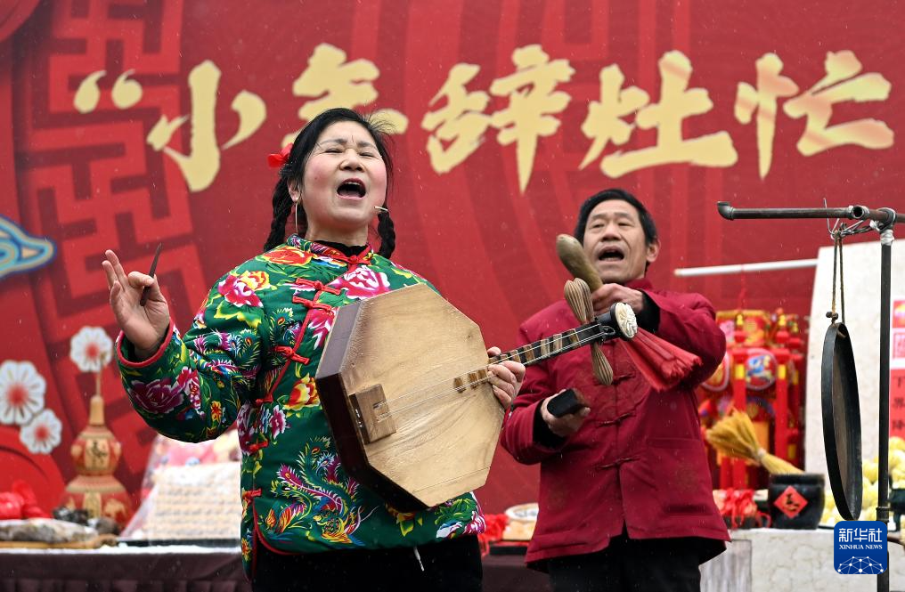 2月2日,在西安永兴坊举行的小年活动上,华阴老腔艺人进行演出。 随着北方、南方小年相继到来,各地春节氛围日益浓厚。 新华社记者 刘潇 摄