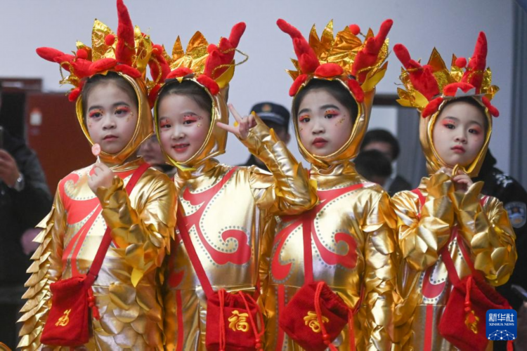2月4日,扮演“小金龙”的小朋友在表演前候场。 当日,2024年浙江省湖州市农村文化礼堂“我们的村晚”活动在吴兴区妙西镇王村村举行,17个舞蹈、戏曲、小品等节目分四个篇章上演。 新华社记者 黄宗治 摄 |