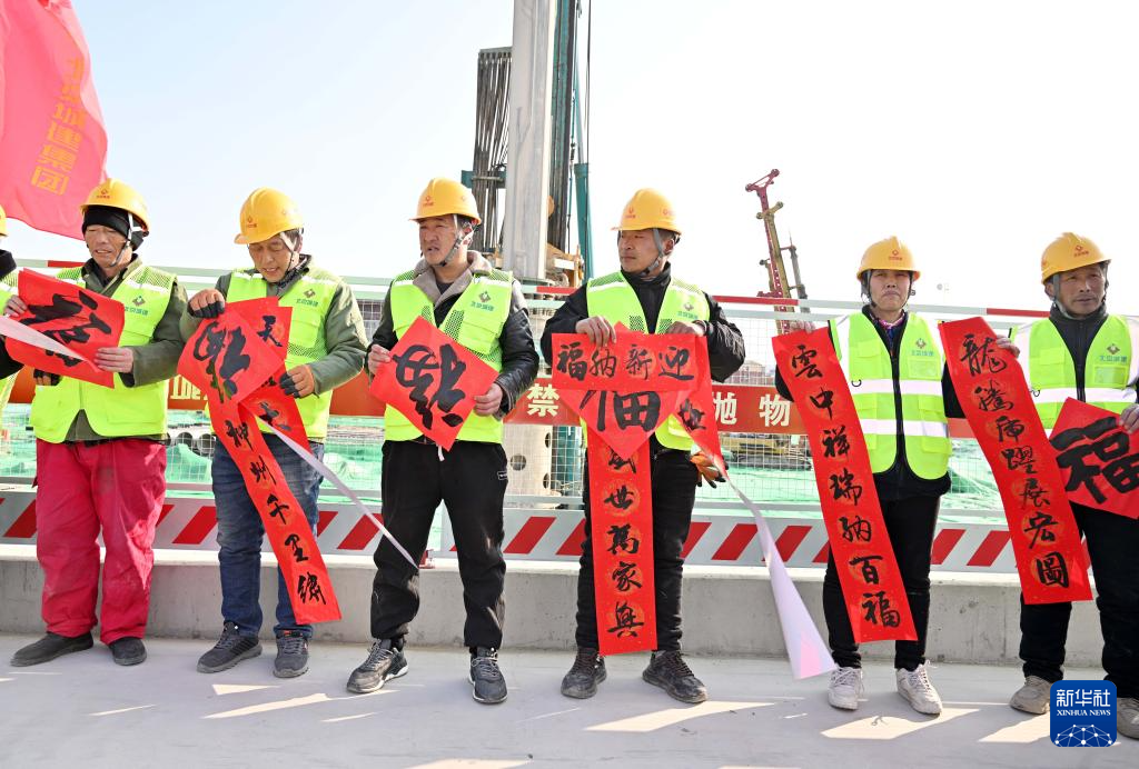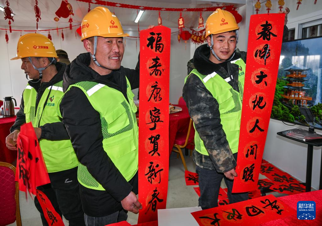 2月6日,北京城建集团树村8号地置换集体产业项目(一标段)的工友领取对联。 在春节来临之际,中国职工发展基金会联合中国职工之家、中国职工保险互助会开展“关爱新业态、情系劳动者”春节慰问活动,向坚守岗位的职工赠送年夜饭礼包,并向职工及其家人致以新春祝福。 新华社记者 陈晔华 摄pagebreak