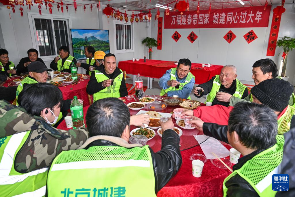 2月6日,北京城建集团树村8号地置换集体产业项目(一标段)的工友一起吃饺子。 在春节来临之际,中国职工发展基金会联合中国职工之家、中国职工保险互助会开展“关爱新业态、情系劳动者”春节慰问活动,向坚守岗位的职工赠送年夜饭礼包,并向职工及其家人致以新春祝福。 新华社记者 陈晔华 摄pagebreak