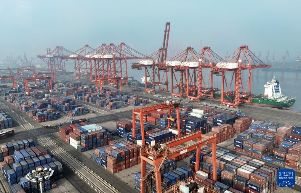 这是2月7日拍摄的唐山港京唐港区集装箱码头(无人机照片)。 记者从河北省唐山市海洋口岸和港航管理局获悉,今年1月份唐山港完成货物吞吐量7321万吨,同比增长13.40%。其中外贸吞吐量3290万吨,同比增长22.12%。 新华社记者杨世尧摄pagebreak
