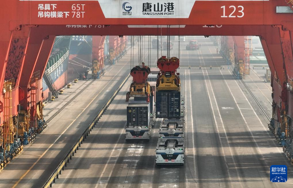 2月7日,在唐山港京唐港区集装箱码头,无人驾驶集装箱卡车在运送集装箱(无人机照片)。 记者从河北省唐山市海洋口岸和港航管理局获悉,今年1月份唐山港完成货物吞吐量7321万吨,同比增长13.40%。其中外贸吞吐量3290万吨,同比增长22.12%。 新华社记者杨世尧摄 |