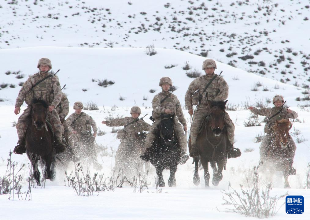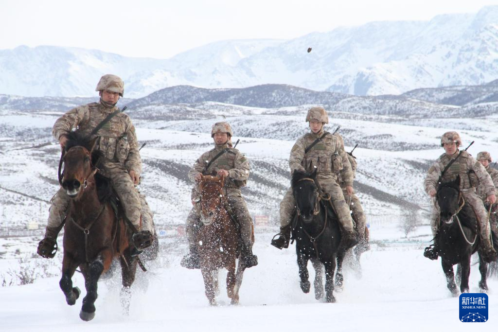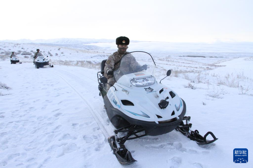 1月11日,边防战士驾驶摩托雪橇巡边。