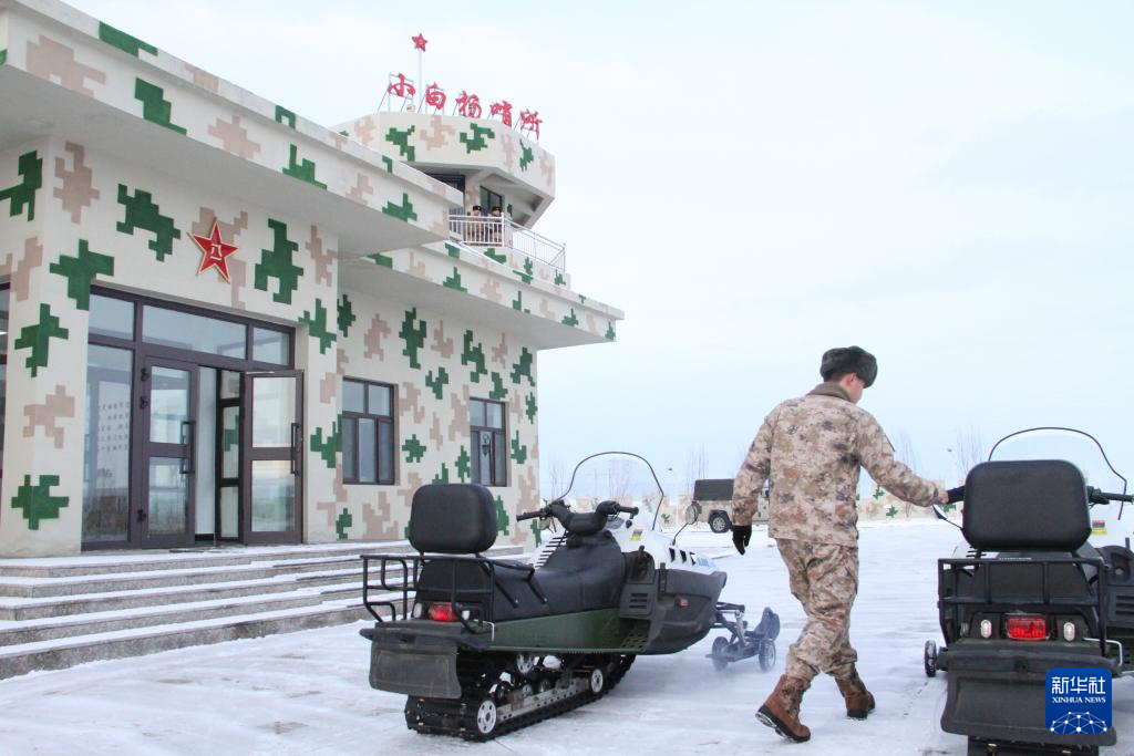 1月11日,边防战士准备驾驶摩托雪橇巡边。