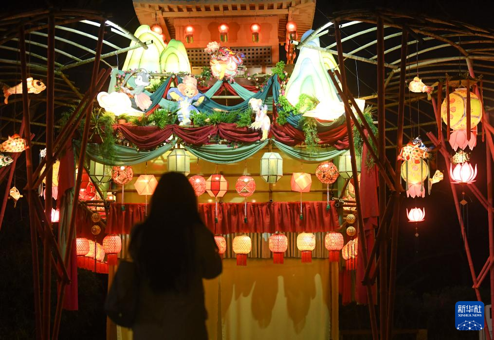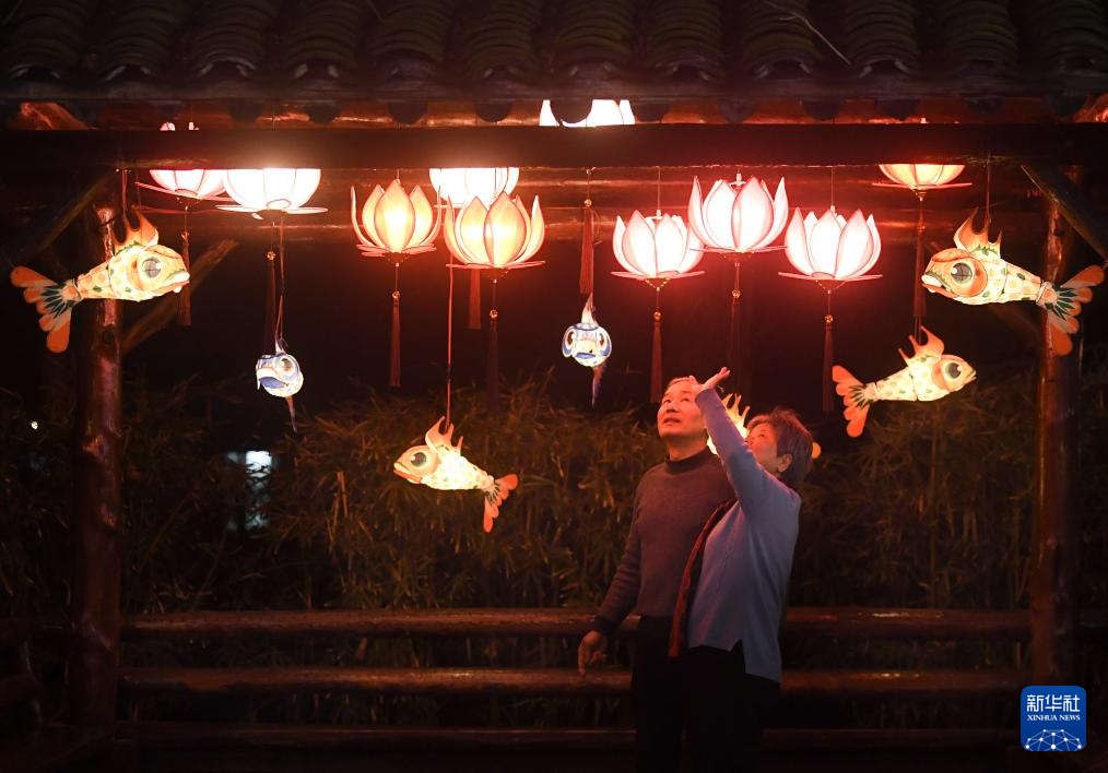春节临近,浙江省杭州市西溪国家湿地公园内千余盏定制花灯与市民见面,年味浓浓。