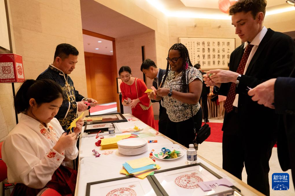 新华社北京2月8日电 综合新华社驻外记者报道:龙年春节是联合国大会通过决议将农历新年列为联合国假日后的首个新年。我驻外使领馆举办丰富多彩的新春招待会活动,“欢乐春节”庆祝活动在多国举行,与各国民众共庆中国农历龙年春节,在交流互鉴中感受世界文明的多姿多彩。 5日晚,联合国教科文组织总部张灯结彩、喜气洋洋,大红灯笼、中国结、剪纸福字等装饰充满浓郁的中国年味。联合国教科文组织执行局主席薇拉·拉克耶在出席中国常驻联合国教科文组织代表团举办的新春招待会上表示,龙是全世界最广为人知的中国文化符号,代表着力量、智慧与吉祥,2024年恰逢龙年与木元素结合,预示着新一年将充满生机与活力、发展与创新,希望教科文组织与中国在吉祥的龙年开启新一段合作历程,取得更多新成就。 2月5日,在美国华盛顿的中国驻美国大使馆,工作人员在侨学界专场春节招待会上向来宾展示剪纸技艺。新华社记者 刘杰 摄 |