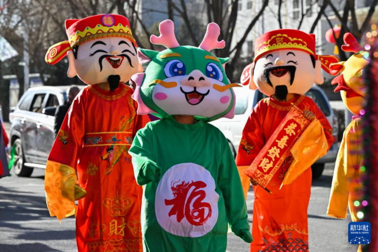 2月17日,表演者在凉城县街道上巡游演出。 新华社记者 刘磊 摄
