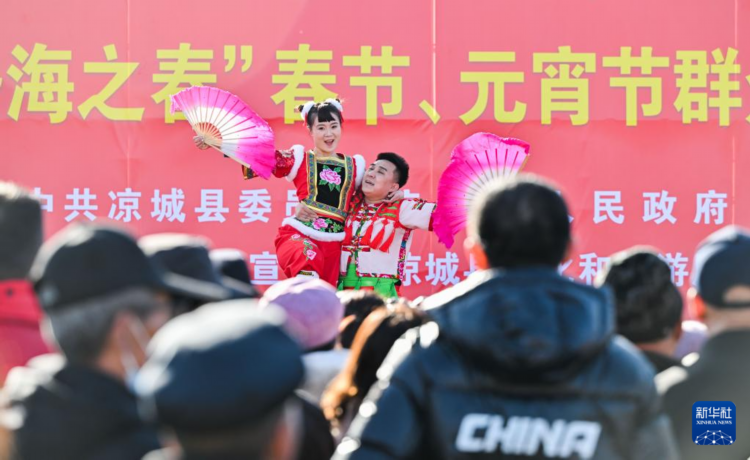 2月17日,观众在凉城县广场观看演出。 新华社记者 刘磊 摄